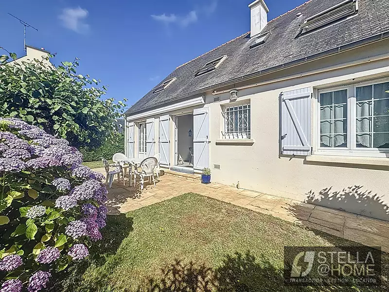 STELLA HOME à le plaisir de vous proposer cette nouveauté : En plein centre de Langueux, cette maison entièrement rénovée avec goût vous séduira dès les premiers instants. Lumineuse, spacieuse, bien pensée? elle coche toutes les cases pour une vie de famille confortable. Au rez-de-chaussée, vous découvrirez une belle entrée qui s'ouvre sur un double salon/séjour traversant, baigné de lumière naturelle grâce à ses grandes ouvertures. La cuisine aménagée/équipée et fonctionnelle, prolonge cet espace de vie convivial. Deux chambres, une salle d'eau, un WC indépendant et un bureau avec accès direct à l'étage complètent ce niveau. La possibilité de vivre de plain-pied est un véritable atout pour une vie pratique et évolutive. A l'étage, trois chambres confortables, une deuxième salle d'eau avec WC et un débarras pouvant faire office de dressing offrent un espace nuit parfaitement adapté aux besoins d'une famille. Côté pratique, un garage fermé est à votre disposition, avec au-dessus un grenier idéal pour le rangement ou le stockage. A l'extérieur, vous profitez d'un jardin bien exposé et d'une terrasse agréable, parfaits pour les beaux jours. Ici, on pose ses valises et on s'installe ! Un bien rare dans un secteur très recherché, à deux pas de toutes les commodités. (4.20 % honoraires TTC à la charge de l'acquéreur.)