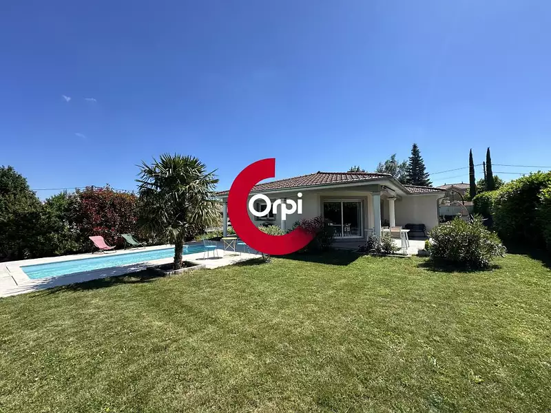 LES CÔTES-D'AREY - MAISON de PLAIN PIED, AVEC PISCINE Orpi vous propose sur la commune les COTES D AREY (38138) une maison de plain pied de 2008 d'une superficie de 130 m² et édifiée sur un terrain de 838 m², clos, arboré. Ce bien se compose d'une entrée, d'une pièce de vie spacieuse et lumineuse (exposition sud) ouverte sur sa cuisine de très bonne facture, avec cellier attenant. Cette maison offre quatre chambres dont une suite parentale avec dressing et une salle d'eau, une salle de bains et deux toilettes indépendants. La maison de plain-pied bénéficie d'un chauffage à air pulsé et réversible (par zone) + poêle à bois sur la partie séjour. Vous disposez d'un espace extérieur dans un environnement calme, terrasse, piscine chauffée et vue dégagée pour un confort optimal. Vous disposez également d'un coin potager. Un garage double et stationnement extérieur sont prévus pour vos véhicules. Des écoles (de la maternelle au lycée) sont implantées à moins de 10 minutes en voiture, école élémentaire et primaire au village. Côté transports en commun, il y a les gares Vienne et Saint-Clair-Les Roches dans un rayon de 10 km, bus scolaire au centre du village. L'autoroute A7 et la nationale N7 sont accessibles à moins de 9 km (proche du futur échangeur à 7km) Contactez l'un de nos conseillers immobilier pour plus de renseignements sur cette maison à vendre aux COTES D AREY. Classe énergie B. Orpi des femmes et des hommes pour votre bien.