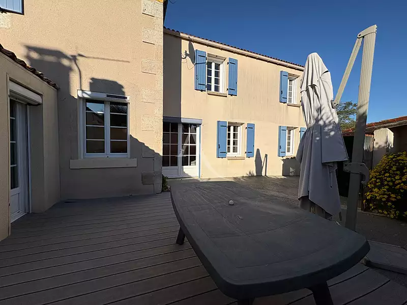 EXCLUSIVITE A proximité d'un charmant village verdoyant, avec école et commerces à proximité, venez découvrir cette maison située à seulement 10 minutes de Fontenay-le-Comte. SPACIEUSE - CHARME DE L'ANCIEN - LUMINEUSE L'entrée est ouverte sur une cuisine aménagée équipée pouvant servir également de salle à manger au vu de son volume. Le salon agrémenté de son insert bois, offre également un joli volume donnant accès à un couloir desservant une chambre de plain pied, une salle d'eau ainsi qu'un wc. L'étage quand à lui, offre trois chambres, un wc ainsi qu'un espace bureau ou salle de jeux selon vos désirs. La propriété est située sur un terrain d'environ 568 m², entretenu, clos et partiellement aménagé. Vous bénéficiez également d'un atelier garage, sur l'avant de la maison. Une terrasse sur l'avant et l'arrière de la maison complète l'ensemble. Réf 1054. DPE D.
