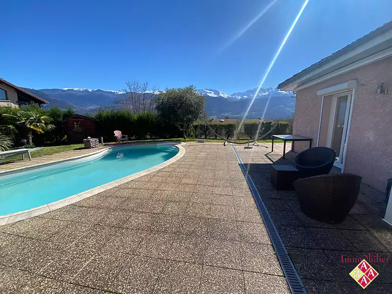 Lumbin sur les hauteurs, très beau terrain de 866 m2. avec vue panoramique sur Belledonne. Maison individuelle de 6 pièces + cuisine équipée ouverte sur séjour avec cheminée. 4 chambres (dont 2 de plain-pied), bureau. 2 salles-de-bain, buanderie. Piscine. Estimation des coûts annuels d'énergie : entre 1650 euros et 2280 euros par an (Prix moyens des énergies indexés au 1er janvier 2021) Les informations sur les risques auxquels ce bien est exposé sont disponibles sur le site Géorisques : www.georisques.gouv.fr