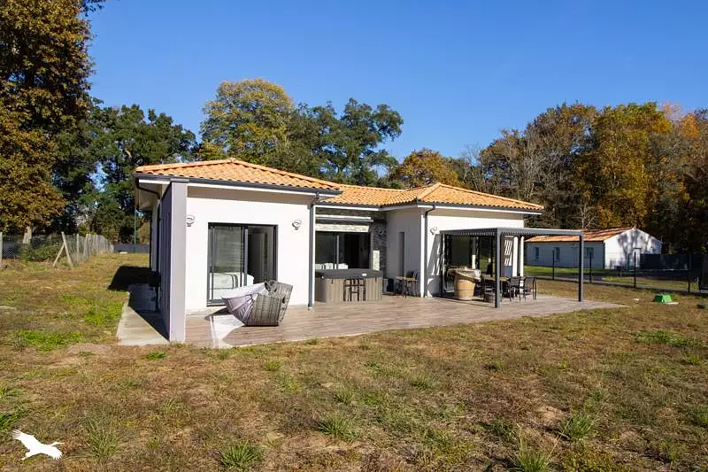 Située au coeur d'un village dynamique et dans un cadre de vie paisible, maison contemporaine de plain pied aux dernières normes. Elle se compose d'une entrée séparée, une pièce de vie donnant sur une terrasse idéalement orientée, et 2 espaces nuit distincts dont une suite parentale. Un terrain d'environ 1500m² et un carport Proposition d'aménagement virtuel non contractuelle en dernière photo.
