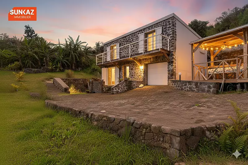 A seulement 6 minutes du centre-ville de Petite-Île, cette maison de 2022 offre un cadre paisible avec une belle ouverture sur la mer. La maison développe 130 m² habitables, comprenant trois chambres de plain-pied d'environ 20 m² chacune, une pièce de vie lumineuse avec cuisine ouverte, une salle de bain, un WC indépendant et une buanderie. Le terrain de 980 m² présente un potentiel d'aménagement intéressant, notamment pour la création d'une dépendance ou d'un espace locatif. Un kiosque de 30 m² permet de profiter pleinement de l'extérieur. Garage fermé. Matériaux durables, façade en moellon et toiture équipée de panneaux photovoltaïques. Environnement calme, nature autour, et accès rapide aux commodités. Honoraires à la charge exclusive du vendeur. Les informations sur les risques auxquels ce bien est exposé sont disponibles sur le site Géorisques : www.georisques.gouv.fr. Pour plus d'informations ou une visite, contactez l'agence au +262 262 490 490.