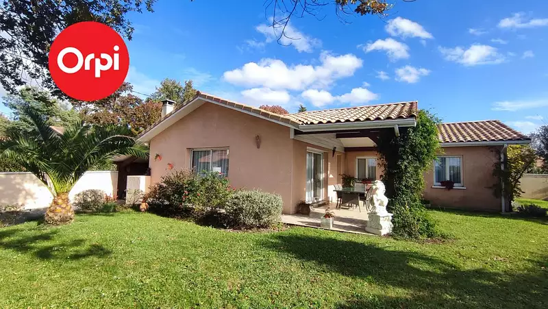 PEYREHORADE, au calme sur les hauteurs, à deux pas du centre et des commodités, belle villa de plain pied en bon état composée d'une grande pièce de vie lumineuse ouverte sur une cuisine aménagée, trois chambres, un bureau transformable en 4ème chambre, salle de bains, WC, cellier.