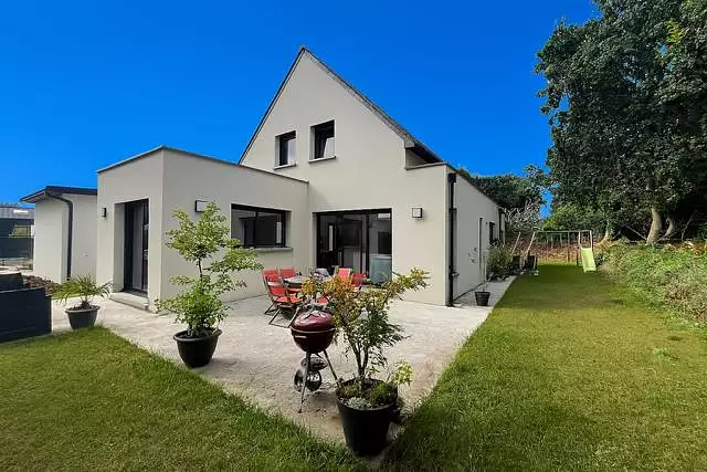 LA TRINITÉ-PLOUZANÉ - Secteur DELLEC - Maison CONTEMPORAINE DE 2024 - LUMIERE, ESPACE et DOUCEUR de VIVRE au bord de la Mer - Idéalement située, à quelques minutes seulement des écoles, commerces et transports en communs, cette Maison allie MODERNITÉ, CONFORT et FONCTIONNALITÉ - Vous serez séduit dès l'entrée par sa GRANDE Pièce de vie (+ de 50m²) baignée de lumière, sublimée par de Larges ouvertures qui invitent l'extérieur à entrer - Elle offre 4 CHAMBRES, dont une au rez-de-chaussée (avec salle d'eau), idéale pour une vie de PLAIN-PIED, l'accueil d'invités ou un bureau confortable - Un cadre de vie pratique, lumineux et apaisant, à deux pas de l'essentiel...et tout près de l'océan - Le bon équilibre entre modernité, accessibilité et évasion - Prestations de qualité: Chauffage Pompe à chaleur pour plus de confort et d'économies, Sublime cuisine ouverte aménagée équipée haut de gamme alliant fonctionnalité et design, 2 salles de bains dont 1 au rdc....Un garage/Atelier pour un espace de stockage appréciable - Une Terrasse bien exposée et à l'abri des regards indiscrets - Domotique pour plus de praticité - COUP DE COEUR ASSURÉ !!!! PRODUIT UNIQUE SUR LE SECTEUR !!! Maison sous garantie Décennale - Du NEUF sans les soucis de la construction !!!