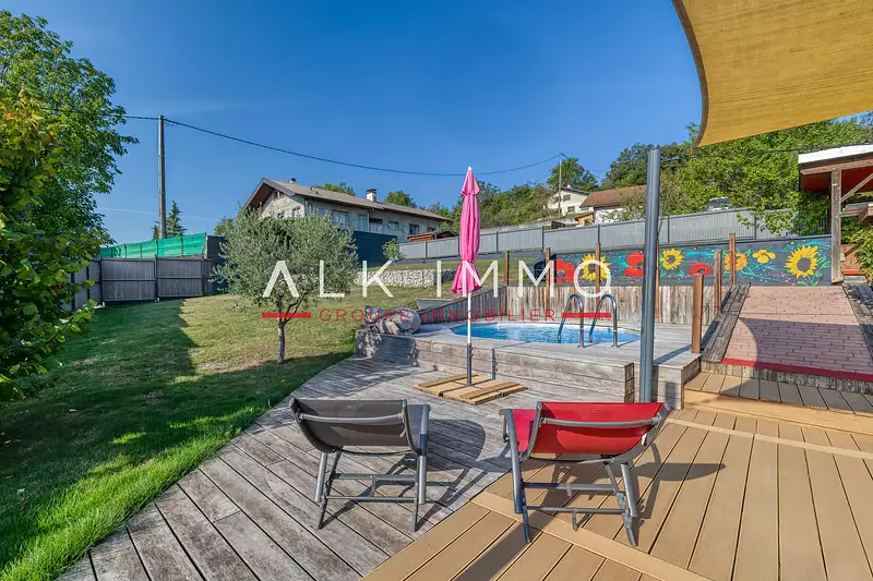 Maison de 4 pièces au calme d’une superficie habitable de 130 m2 édifiée au 19ème siècle sur une parcelle constructible et piscinable de 635 m2. La maison bénéficie d’une entrée par un jardin clos d’environ 500 m2 avec une double terrasse de plus de 100 m2 ainsi qu’une piscine semi-enterrée sans vis-à-vis bénéficiant d'une vue dégagée sur le Mont Blanc, le Veyrier, le Parmelan, la Tournette et le lac.
