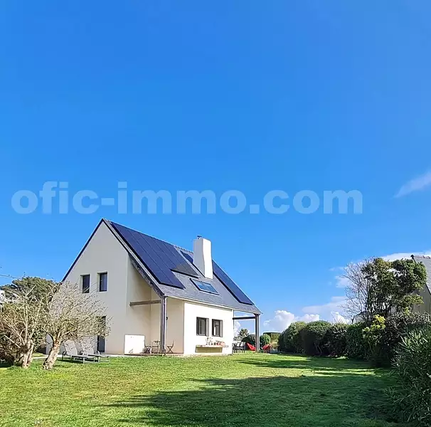 Dans un environnement paisible, à quelques pas d'une plage au charme sauvage, elle propose de beaux volumes (130m² hab, env. 160m² au sol, terrain 1196m²) dans un intérieur lumineux et fonctionnel.