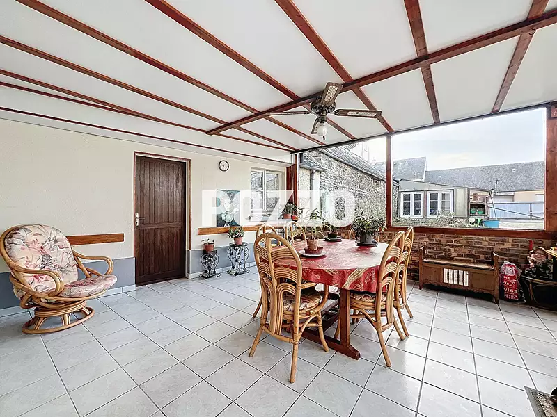 Pozzo Immobilier vous propose à la vente cette charmante maison de 130 m², idéalement située en plein coeur du centre-ville de Saint-Hilaire-Du-Harcouët. Elle se compose comme suit : - Au rez-de-chaussée : un vaste séjour avec poêle à granulés, une cuisine aménagée et équipée, une véranda de 23 m² exposée plein ouest, côté jardin, une salle d'eau, une chambre, ainsi que des WC séparés. - A l'étage : un palier desservant trois chambres spacieuses (de 10,75 m² à 17 m²) et des WC séparés. A l'extérieur, vous profiterez d'un terrain clôturé avec garage, abri de jardin, cour en enrobé, jardin et portail électrique. La maison a bénéficié de plusieurs travaux récents : installation d'une pompe à chaleur, changement des menuiseries, ajout d'un poêle à granulés et mise en place d'une VMC. N'hésitez pas à contacter l'agence Pozzo Immobilier de Saint-Hilaire-Du-Harcouët pour venir découvrir ce bien.
