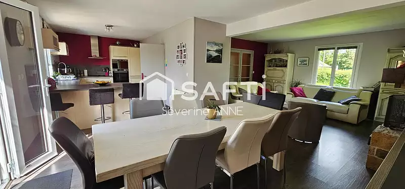 Découvrez cette magnifique maison familiale de 130 m² située sur une parcelle entièrement close et arborée de 3545 m². Le jardin est agrémenté d'un superbe saule pleureur, offrant un cadre paisible et enchanteur pour profiter des beaux jours. Profitez également d'une grande terrasse en bois, parfaitement orientée, idéale pour des moments de détente en plein air ou des repas en famille.