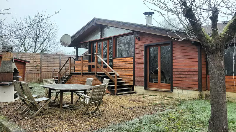 AHV Immobilier vous propose dans un domaine résidentiel privé à moins de 5 minutes de Bray-sur-Seine, chalet d'environ 130 m2 habitable comprenant une entrée, cuisine ouverte sur salle à manger, salon avec cheminée, salle d'eau avec douche et baigoire, WC, trois chambres dont une avec terrasse, bureau. Jardin clos avec deux abris de jardin.