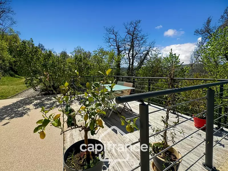 Le tout est implanté sur un terrain agréable de 4480m², offrant une vue imprenable sur les Monts Ardéchois. Les accès aux écoles, à la gare et aux commerces du quotidien sont simples et rapides, sans perturber la tranquillité des lieux.