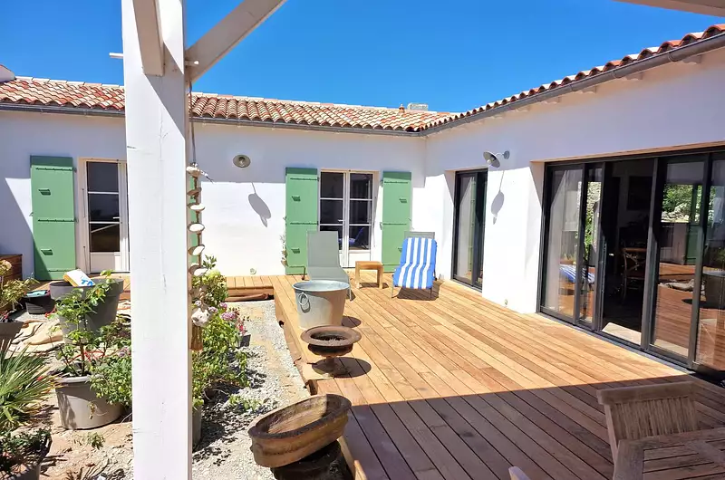 ATLANTIC VIAGER vous présente, cette magnifique maison de standing tout juste sortie de terre à SAINTE-MARIE-DE-RÉ, au sud de l'île de Ré, et à l'Ouest de la commune, la plage de Montamer à 500 mètres. Cette maison de plain pied de 130 m² sur une parcelle de 409 m² vous ravira par son cadre idyllique.