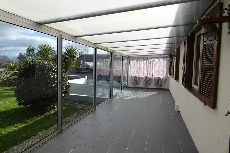 Finistère, Pays de Morlaix, Taulé, à vendre maison de 130 m2, au bourg, à mi-chemin entre Morlaix et les communes littorales de Carantec et St Pol de Léon. Découvrez cette maison de 1976, mitoyenne d'un côté, habitable de plain pied, dans un quartier pavillonnaire à moins de 5 minutes des commerces. Elle est composée d'une entrée, cuisine aménagée, salle à manger, salon/bibliothèque avec insert, deux chambres, bureau, salle de bains et des toilettes. A l'étage, le palier distribue deux chambres avec placards, plus une en enfilade. Une véranda de plus de 10m2 prolonge la pièce de vie et donne sur le jardin clos, pourvu d'un petit bassin pour la détente ou l'agrément. Une buanderie, une cave et un garage complètent ce bien.