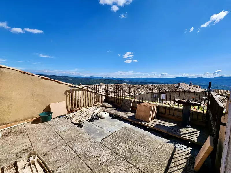 Au cœur du charmant village médiéval de Viens, maison ancienne sur deux étages avec jardinet au rez-de-chaussée et terrasse au dernier niveau de 16 m2 qui offre une très belle vue dégagée sur le Luberon. Elle se compose d'une chambre indépendante avec sa salle de douche au rez, de 2 caves, d'une pièce à vivre avec cheminée et salle de bain au 1er étage et de 3 chambres et salle de douche au 2 ème étage. Des travaux sont à prévoir.