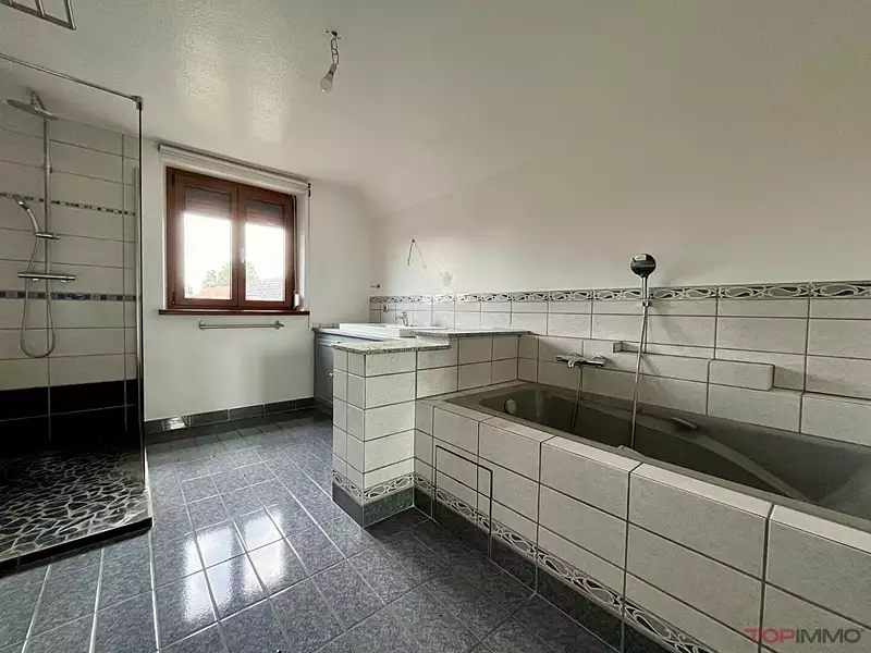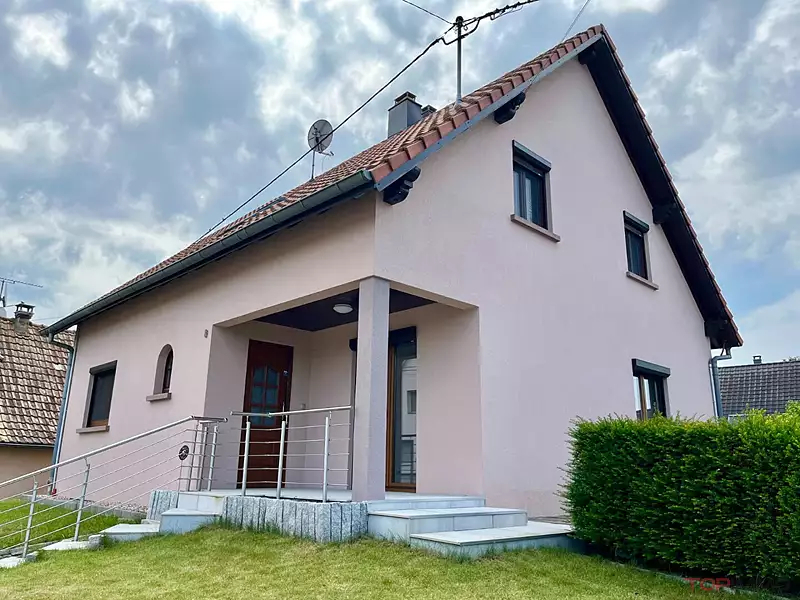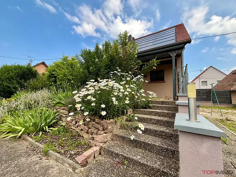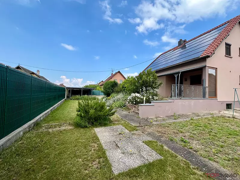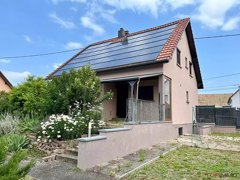 EN EXCLUSIVITE  CHEZ TOPIMMO NEUF-BRISACH , dans le paisible village de WECKOLSHEIM , à 10 mn de la frontière BREISACH et 15 mn de COLMAR , sur un terrain de 691m² avec un potager et une grande cour pavée , découvrez cette grande maison construite en 1993 , bien au calme , elle dispose de 5 pièces , une cuisine équipée moderne donnant accès à une terrasse couverte sud de 40m² , un salon - séjour de 32 m² , 4 chambres dont une au rez de chaussée , une salle de bain avec douche et baignoire , 2 wc séparés à chaque niveau . Pour agrémenter l'ensemble , vous profiterez d'un grand sous sol de 65m² à usages multiples . Belles prestations: porte d'entrée en aluminium , pompe à chaleur réversible , forage pour arrosage , double carport ,! LE GRAND PLUS : un rendement annuel d'environ 3500 euros  grâce aux panneaux solaires !!!!!!!!!  A DECOUVRIR !Afficher plus