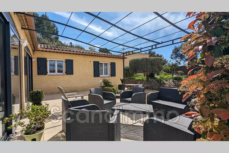 En impasse, en position dominante à la vue dégagée imprenable, dans un quartier prisé, venez poser vos bagages dans cette très jolie villa traditionnelle (2008) en parfait état avec véranda + dépendance (2018) 30m² habitables + double garage 33m² l'ensemble sur un terrain clos et magnifiquement paysagé de 1.400m². Construite en 2008 avec gout et entretenue à la perfection, vous retrouverez: séjour avec poêle à bois et cuisine équipée donnent accès à la véranda et à la terrasse avec pergola, 3 chambres avec placard, salle d'eau/WC et WC indépendant. La maison est équipée de la climatisation réversible, de convecteurs électriques, VMC, double vitrage, fibre, égout.. La dépendance offre: entrée, deux chambres dont une avec salle de bains/WC. Vous profiterez d'une belle piscine 8x4m au chlore avec plage, un terrain de pétanque, de toutes les expos et d'un cadre de vie idyllique. Les informations sur les risques auxquels ce bien est exposé sont disponibles sur le site Géorisques :www.georisques.gouv.fr (Collaboration avec une autre agence)