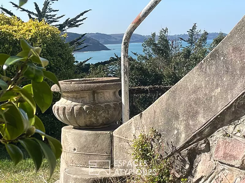 Découvrez cette propriété offrant une vue panoramique à 180° imprenable sur la baie de Saint-Brieuc et la pointe du Verdelet. Située aux abords de la route de la Corniche axe majeur d'accès au coeur de village, à 100m de la plage de Caroual accessible à pied et à 500m du centre-ville d'Erquy, cette villa édifiée en 1924, , typique des propriétés bourgeoises de l'époque, entièrement construite en pierre de grès rose sur quatre niveaux a su garder son charme d'antan. Sise au coeur d'une parcelle de 615m² entièrement clôturée, agrémentée d'un magnifique Cyprès de Lambert, elle arbore fièrement sa majestueuse façade ornée d'un escalier extérieur aux formes arrondies, entrée principale de la propriété. Le long couloir du rez-de-chaussée distribue un grand salon séjour, d'une belle hauteur sous plafond de plus de 2m90, où les planchers d'origine ont gardé leur authenticité. Un bel espace de vie où il fait bon s'abandonner à la vue imprenable, inlassablement au rythme des vagues. La cuisine séparée dotée au sol de carreaux de ciment d'époque, offre un accès direct au jardin sur l'arrière de la propriété pour profiter de moments de détente à l'abri des regards. Une chambre de 13 m² avec vue mer ainsi qu'une salle d'eau et un WC complète le rez-de- chaussée. L' escalier en bois d'époque nous amène au 1er étage. Le palier dessert quatre spacieuses chambres d'une belle hauteur sous plafond de 2m70, également dotées de leur plancher d'origine. Un cabinet de toilette indépendant complète ce niveau L'escalier se poursuit vers les combles, d'une surface de plancher d'environ 60m², offrant une possibilité d'aménagement non négligeable. Le rez-de-jardin est doté d'un un sous-sol divisé en 3 parties comprenant une cave, une chaufferie ainsi qu'une pièce à usage de rangement. Un garage indépendant complète ce bien. D'importants travaux sont à prévoir pour redonner vie à ce bien au potentiel exceptionnel. A visiter sans attendre DPE : CLASSE F : énergie primaire / 345 KWH/m/an - finale / 315 KWH/m/an GES : CLASSE CLIMAT F : 96 kg/CO²/an Montant moyen estimé des dépenses annuelles d'énergie pour un usage standard établi à partir des prix de l'énergie de l'année 2021 : entre 3440 euros et 4700 euros. Logement à consommation énergétique excessive. Assainissement conforme tout à l'égout Contact : Maryse STOURM : 06.83.76.55.12 RSAC SAINT-BRIEUC 520 653 510 "Les informations sur les risques auxquels ce bien est exposé sont disponibles sur le site Géorisques : https://www.georisques.gouv.fr" (4.00 % honoraires TTC à la charge de l'acquéreur.) maryse STOURM (EI) Agent Commercial - Numéro RSAC : 520 653 510 - SAINT-BRIEUC.