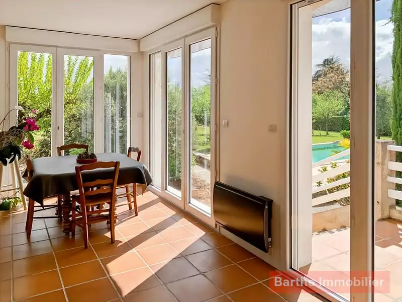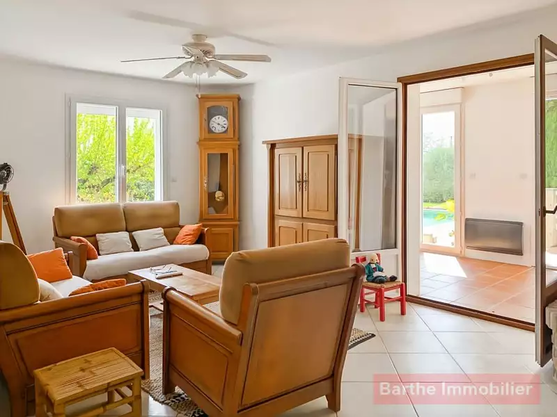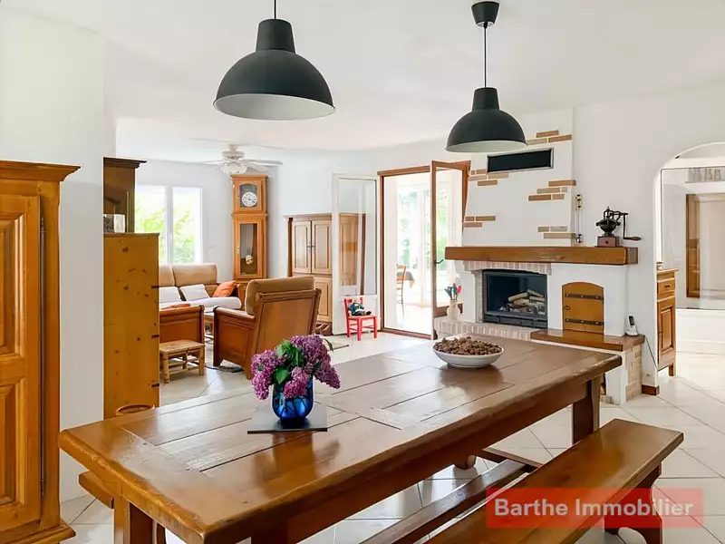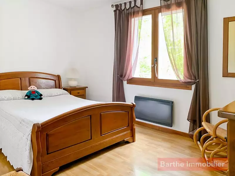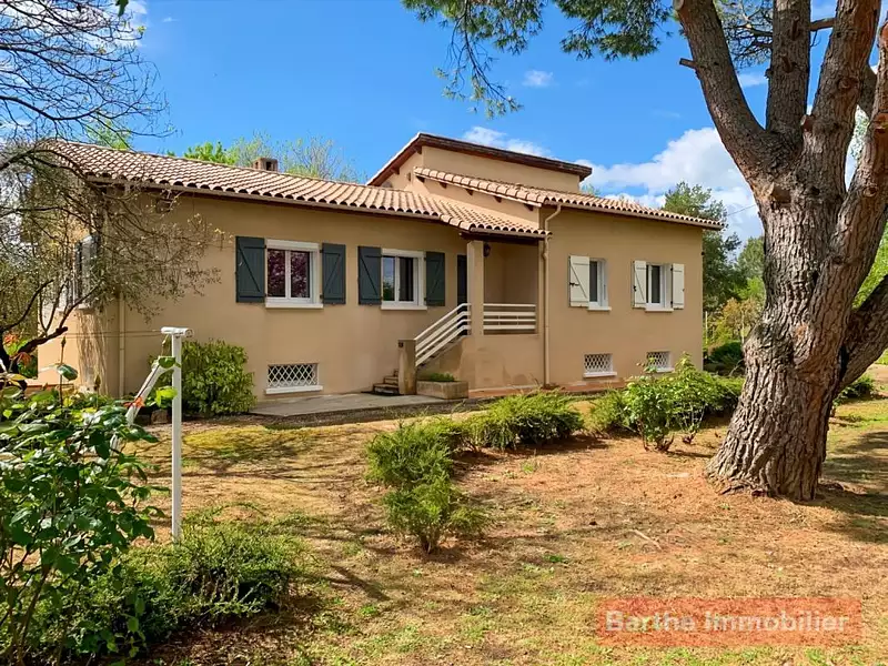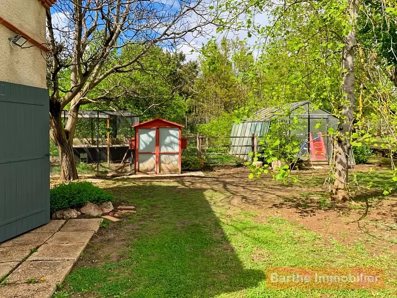 A 3km du centre ville, maison construite en 1991 sur terrain clos et arboré de 4961 m². Environnement calme.