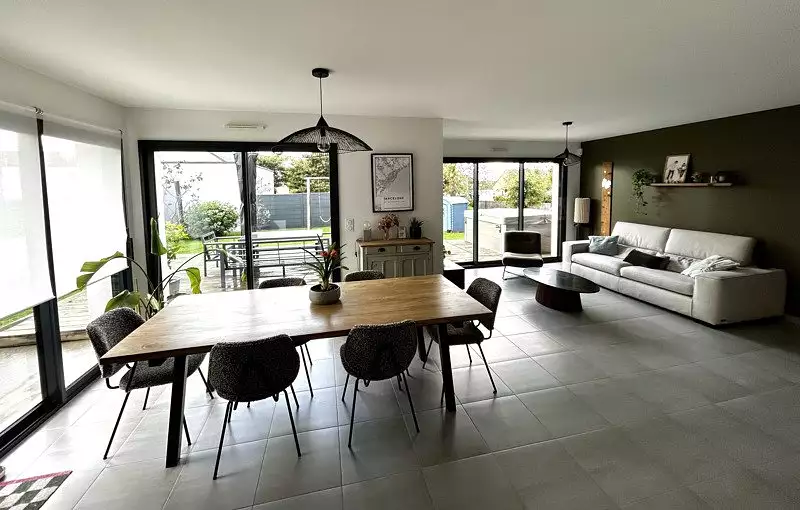 Dans un quartier résidentiel venez découvrir cette maison contemporaine de 2018. Elle se compose d'une vaste pièce de vie lumineuse ouverte sur la terrasse , cuisine aménagée, buanderie, suite parentale avec salle d'eau et dressing. A l'étage : 3 chambres avec rangements, salle de bain. Jardin clos, stationnement.
