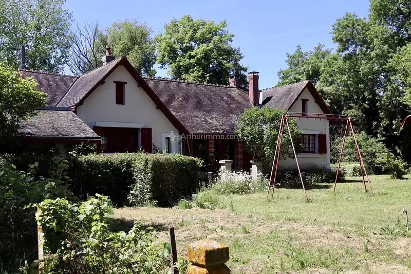 Magnifique maison des années 1920 en bord de loir et à 5 minutes de la chartre sur le loir exclusivite ! le cabinet arthurimmo com ad foncier est ravi de vous présenter ce véritable coup de coeur situé à 5 minutes de la chartre sur le loir. maison des années 1920 qui fut construite à la demande d'une anglaise, située en bord du loir, sur un terrain de presque un hectare. cette demeure entièrement de plain-pied propose 131 m2 habitables répartis d'une façon originale. en forme de u et en son centre le séjour elle s'agence avec deux chambres et salle de bains dans chaque aile et un patio ombragé qui ajoute une note exotique. chaque pièce dispose de sa propre cheminée car à l'époque de sa construction ce fut le seul moyen de chauffage. pour achever le descriptif intérieur, une cuisine séparée avec passe plat et véranda sur l'arrière de la maison avec vue sur le parc et le loir. vaste terrain avec ponton et garage à bateau, étang, entièrement clos et bien arboré. garage, abris voiture, chauffage gaz de ville. prévoir quelques travaux de remise aux normes mais le bâti est en excellent état. taxe foncière: 600 euros référence agence: 7511 le prix de 243 800 euros est exprimé honoraires d'agence inclus, soit 230 000 euros net vendeur et 13 800 euros d'honoraires à la charge de l'acquéreur. cabinet arthurimmo com ad foncier, 33 rue nationale 72340 la chartre sur le loir. -