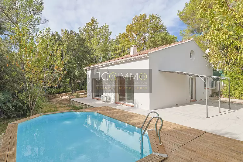 La villa dispose de belles prestations générales : climatisations réversibles, poêle à bois, double vitrage en aluminium, volets roulants électriques…