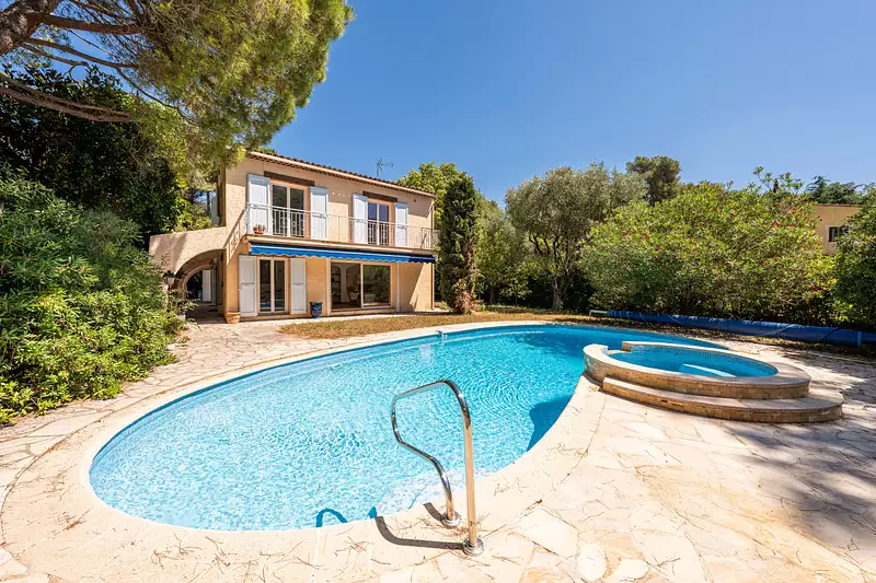 Édifiée sur un terrain plat et arboré de 1 398 m2, elle dispose d’une piscine chauffée, d’un jacuzzi et d’une terrasse permettant de profiter pleinement des extérieurs. Entièrement climatisée, elle assure un confort optimal en toute saison.