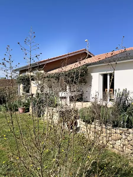 La maison est munie d'une terrasse coté est, et d'une véranda coté ouest avec un Jacuzzi, mêlant intimité et bien-être. Un abri de jardin et un bassin d'agrément complète cette maison familiale, le tout sur une parcelle d'environ 1231 m2.