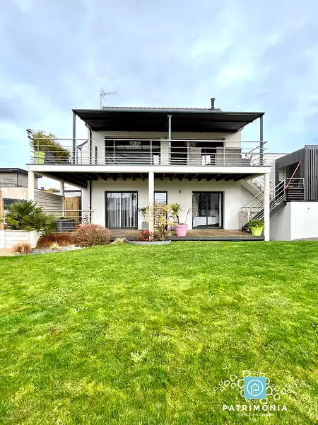 SITUEE AU POULDU - ELEGANTE CONTEMPORAINE AVEC DE BEAUX VOLUMES ET DES BELLES PRESTATIONS. Dès l'entrée, la maison se distingue par un espace de vie atypique et lumineux avec une vue mer et un accès à la terrasse. La cuisine est fonctionnelle et elle bénéficie d'une arrière cuisine. A l' étage: une mezzanine avec une chambre. Le rez-de-chaussée comprend un dégagement, wc, un couloir donnant accès à deux belles chambres avec accès au jardin dont une avec un dressing attenant , salle de bains spacieuse avec douche, dressing. Studio attenant avec un coin nuit en mezzanine et avec un accès extérieur indépendant. Garage attenant. Terrain paysagé de 583 m² avec deux terrasses et un espace jacuzzi. A VISITER! (3.50 % honoraires TTC à la charge de l'acquéreur.)