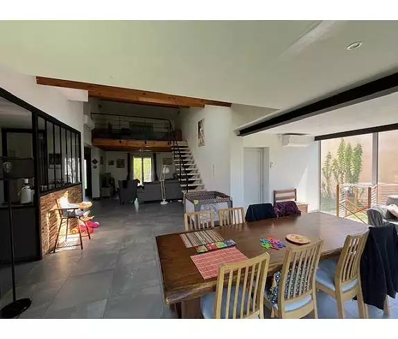 Située à l'entrée de pibrac, coté perget: Maison familiale trés bien placée, au calme, avec accès rapides aux écoles internationales et aux commodités. Quasi toute de la pl.pied, avec une mezzanine en plus, elle a été trés bien entretenue et rénovée. Elle dispose d'un bel espace à vivre lumineux, une cuisine semi ouverte avec verrière, quatres chambres de pl.pied, wc indépendant, garage communiquant. Le tout sur environ 600 m2 de parcelle piscinable.