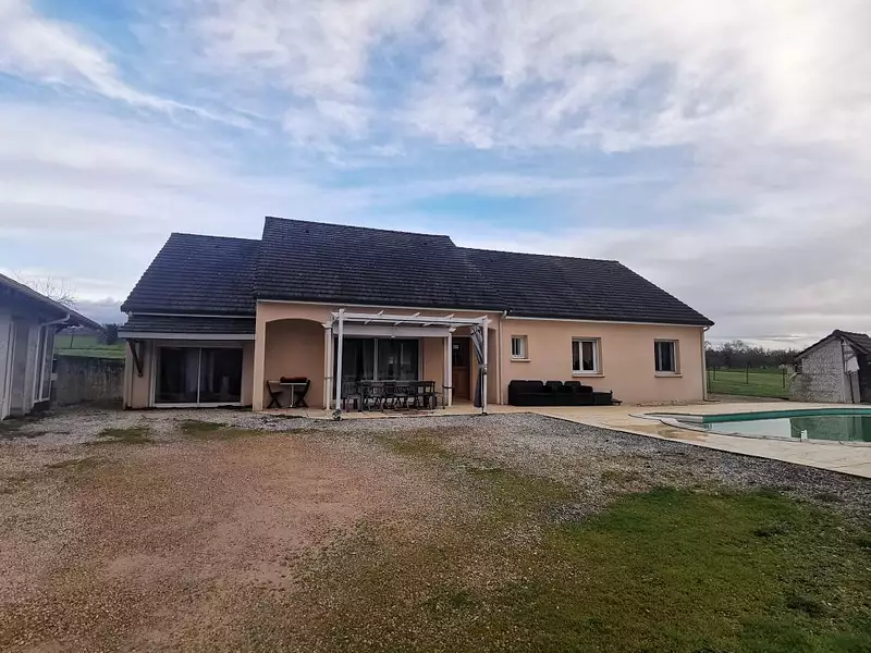 A 30 minutes de Brive-La-Gaillarde, maison de plain-pied de type 6 comprenant une cuisine ouverte sur un salon séjour lumineux, cinq chambres et une salle d'eau.