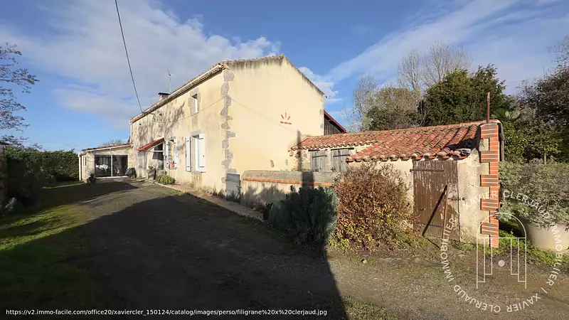 Votre Agence XAVIER CLERJAUD IMMOBILIER vous répond du lundi au samedi de 9h00 à 19h00 sans interruption. Cette charmante maison de campagne, située en bord de rivière, offre un cadre de vie paisible et verdoyant avec une vue sur le bocage. Elle comprend au rez-de-chaussée, un hall d'entrée, une cuisine aménagée, un salon/salle à manger avec insert, un dégagement, une chambre de 15m2, une salle d'eau, un wc indépendant et une véranda. A l'étage, un couloir, deux chambres de 18m2 et un wc indépendant. Un garage et des dépendances viennent compléter ce bien. Le tout sur une parcelle de 30653m2. Ouverture double vitrage Chauffage électrique et insert. Assainissement individuel Contact : Xavier CLERJAUD - 06 24 08 09 51 - (5.00 % honoraires TTC à la charge de l'acquéreur.)