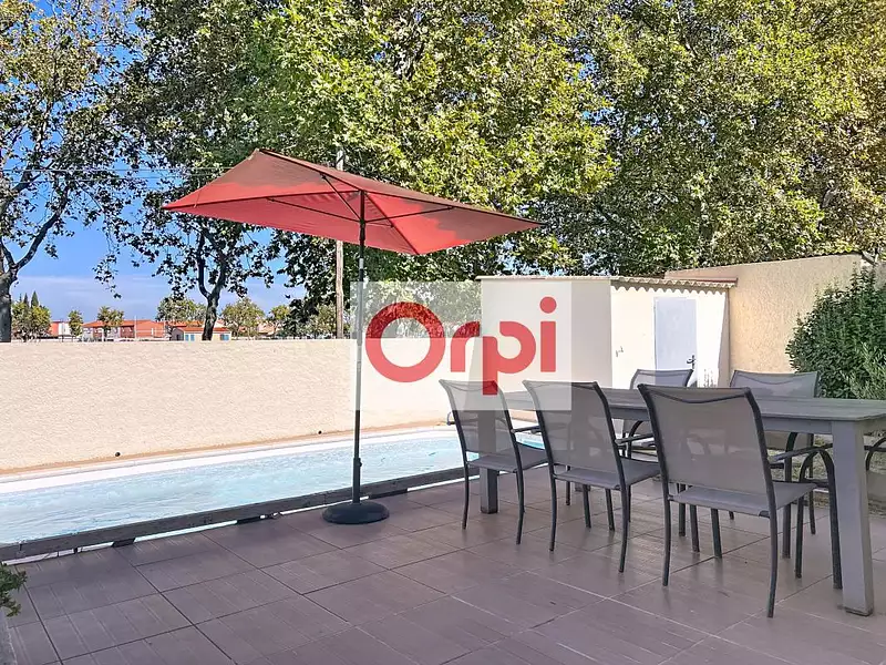 Extérieur pensé pour vivre : Piscine 6,50 x 3,60 m sans vis à vis - terrasse pour les repas en famille, grand jardin dans un calme absolu, garage de 20 m² et stationnement devant la maison.