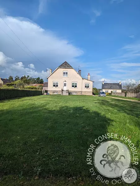 ARMOR CONSEIL IMMOBILIER : Vanessa SAMSON vous offre l'opportunité d'acquérir cette maison aux beaux volumes à deux pas de tous commerces et des écoles. Elle vous offre une entrée, une salle à manger suivie d'un salon avec cheminée ouverte, une cuisine aménagée et équipée, 2 chambres et une salle d'eau en rez-de-chaussée. De son étage, vous découvrirez un palier desservant 3 autres chambres. Un sous-sol avec arrière-cuisine, coin atelier et garage. Ce bien sur un terrain entièrement clos et constructible de plus de 1400 M2. A VISITER SANS TARDER!!!
