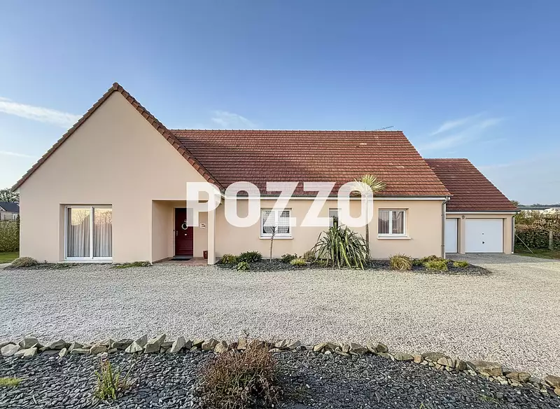 RONCEY - A 500 m des commerces, 12 km de la gare la plus proche et 20 km du bord de mer, cette maison de plain-pied construite en 2000 offre environ 133 m² habitables sur un terrain clos d'environ 936 m². Elle s'ouvre sur une entrée desservant un double séjour d'environ 44 m² (salon et salle à manger), exposé SUD, avec accès à la terrasse équipée d'un store banne motorisé. Une cuisine aménagée et équipée Vous profitez également d'une buanderie/arrière-cuisine et de nombreux rangements. L'espace nuit regroupe quatre chambres de plain-pied (environ 15 m², 15 m², 11 m² et 11 m²), une salle de bains avec WC, une salle d'eau avec WC et des dégagements confortables. Un grenier au-dessus offre un volume supplémentaire pour du stockage ou un futur aménagement selon vos besoins. Côté annexes, la propriété dispose d'un grand garage d'environ 40 m² avec deux portes électriques, d'une cave à vin, d'un cabanon de jardin et de places de stationnement extérieures. Deux récupérateurs d'eau de pluie complètent l'ensemble. Les prestations comprennent : construction en parpaings sous toiture en tuiles, menuiseries PVC double vitrage avec volets roulants électriques, chauffage électrique mixte (plancher chauffant + un radiateurs d'appoint dans le salon), ballon d'eau chaude électrique, raccordement au tout-à-l'égout, système d'alarme. Classe énergie D (193 kWh/m²/an) et climat B (6 kgCO?/m²/an), pour des dépenses annuelles estimées entre 1 970 euros et 2 680 euros. Le jardin, facile d'entretien, profite d'un environnement calme dans une commune entourée de nature, idéale pour une famille recherchant une vie de plain-pied proche des commodités. Pour toute information complémentaire ou organiser une visite, contactez Pozzo Immobilier ? Agence de Coutances au 02 33 19 10 00