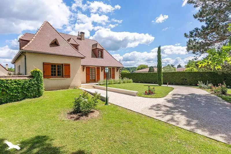 Beaucoup de charme pour cette périgourdine parfaitement entretenue, au calme avec jolie vue sur les coteaux, comprenant une entrée, un séjour avec insert, 4 chambres, une salle de bains et une salle d'eau, un cellier, un garage, un atelier et une pièce annexe type studio, une terrasse couverte sur joli parc d'environ 3000m².