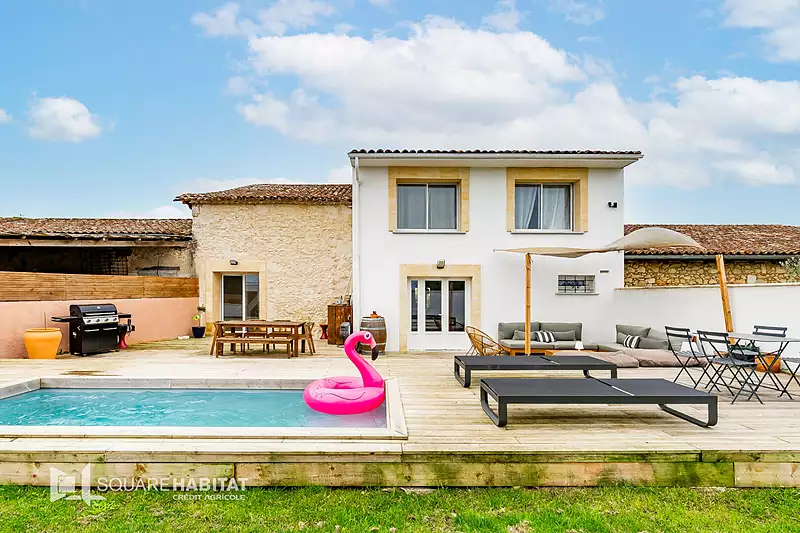 Sur la commune de Saint-Loubès, venez découvrir cette superbe maison familiale entièrement rénovée, d'une surface de 132 m², implantée sur une parcelle de 542 m². Elle se compose d'une belle pièce de vie très lumineuse, réunissant salon, séjour et cuisine ouverte, offrant un espace convivial et moderne. La partie nuit comprend quatre chambres spacieuses, deux salles d'eau, ainsi que deux WC pour plus de confort. Une buanderie vient compléter l'ensemble. A l'extérieur, vous profiterez d'une agréable terrasse en bois et d'une piscine 2x5 mètres, parfaites pour les journées ensoleillées. Des places de stationnement sont également prévues sur la parcelle. Côté technique, la maison offre des prestations de qualité : menuiseries PVC et aluminium, volets électriques, chauffage gainable par pompe à chaleur air/air, et assainissement individuel. Aucun travaux à prévoir, cette maison a été rénovée avec soin et offre tout le confort du moderne. Il ne vous reste plus qu'à poser vos valises et profiter de la douceur de vivre à Saint-Loubès.