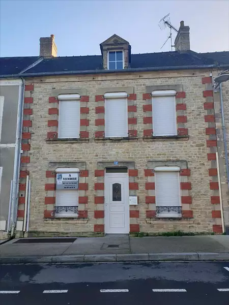 MAISON DE BOURG T4 - AVEC JARDIN ET GRANDE VERANDA En centre bourg, proche tous commerces, école primaire, collège ... -Au rez-de-chaussée : séjour-salon, cuisine ouverte, buanderie, salle d'eau, W.C, accès véranda dans lequel deux celliers, -au premier étage : palier et couloir avec rangement desservant deux chambres et une salle d'eau avec W.C, accès à la véranda très lumineuse et chauffée avec vue sur le jardin, -au deuxième étage : grande chambre, petite pièce attenante. Parcelle cadastrale de 252 m² Les informations sur les risques auxquels ce bien est exposé sont disponibles sur le site Géorisques : www. georisques. gouv. fr