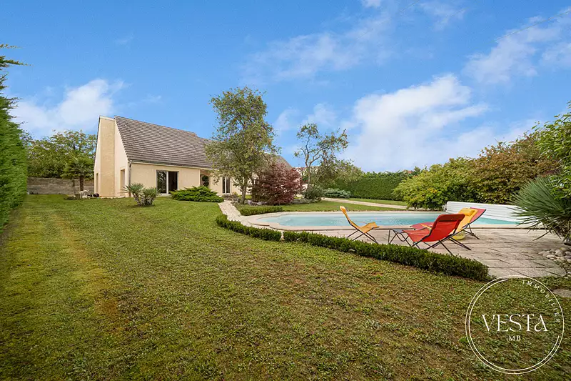 Vesta MB Immobilier vous présente cette magnifique maison de plain pied de 2007, de type 5, d'une surface de 133,19 m² sur un terrain clos et arboré de 1 405 m², située sur la commune d'Ahuy. La maison se compose d'une entrée avec placard, d'un vaste espace de vie de 57 m² avec salon, séjour et cuisine américaine équipée, cet espace profite d'une triple exposition Est, Sud et Ouest permettant d'apprécier la luminosité naturelle toute la journée. Le coin nuit se compose de trois grandes chambres, d'une salle de bains avec baignoire et douche à l'italienne, d'un wc séparé et d'une buanderie donnant accès au garage de plus de 60m². Le jardin clos et arboré, doté d'une piscine de 10 x 4 m exposée Sud-Est, permet de profiter de chaque journée ensoleillée dans un cadre paisible et préservé de tout vis-à-vis. Ce qu'on aime : Sa localisation aux portes de Dijon dans le très prisé village d'Ahuy, Son espace de vie spacieux, baignée de lumière avec sa triple exposition, Son grand terrain arboré avec piscine, sans aucun vis-à-vis, Sa proximité des commodités. Infos techniques : Chauffage au sol au gaz, Chaudière à condensation, Puit dans le jardin. Infos pratiques : École maternelle et primaire à 200 mètres de la maison, Boulangerie à 500 mètres de la maison, Supermarché à 5 minutes de voiture de la maison, Arrêt de bus à 600 mètres de la maison (DIVIA B10 Talant Citadelle - Ahuy). Dijon centre ville à 10 minutes de voiture de la maison. . Guillaume LOMBARDET (EI) Agent Commercial - Numéro RSAC : 878 097 153 - DIJON.