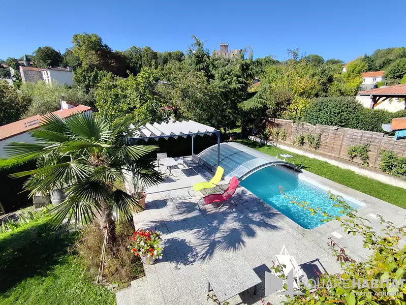 Venez découvrir cette Maison construite en 1991, sur une jolie parcelle clôturée et aménagée de 133.28m². 133.28m² habitables entièrement pensés par un architecte, avec de beaux volumes et surtout de nombreuses ouvertures : L'intérieur est baigné de lumière. 4 Chambres, salon/séjour ouvert sur une cuisine aménagée et équipée (avec une arrière cuisine pour les adeptes des cuisines fermées). Salle d'eau, salle de bains, sanitaires à chaque étage. Chauffage électrique et poêle à granulé. Travaux récents effectués sur les aménagements extérieurs et entretien global de qualité sur tout le bâtiment. Pour l'extérieur vous serez séduit par les terrasses, l'espace piscine et la vue magnifique tantôt sur le CHATEAU tantôt sur le panoramique de la zone de LADOUX. Un garage double complète ce bien. Une maison à voir ABSOLUMENT !