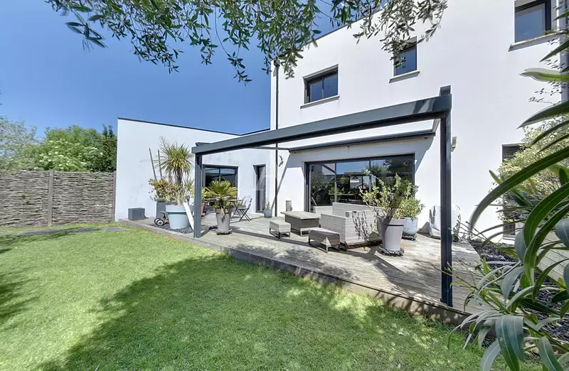 Dans un environnement calme et soigné, contemporaine de 2018 aux prestations de qualité comprenant : Au rez-de-chaussée: Entrée avec vestiaire, vaste espace de vie lumineux avec cuisine ouverte équipée, WC (lave-mains), dégagement, cellier, belle suite parentale avec salle d'eau, WC et dressing. A l'étage: Dégagement, 3 chambres, salle de bains + douche, WC. A l'extérieur, jardin paysagé agrémenté d'une terrasse en bois. Garage et stationnement privatif à l'avant. Chauffage au sol. Domotique. Normes RT 2012- Garanties décennales. A visiter sans tarder ! DPE : B (64) / GES : A (10) Honoraires à la charge de l'acquéreur REF : 35280 (3.92 % honoraires TTC à la charge de l'acquéreur.) Christophe BAYET (EI) Agent Commercial - Numéro RSAC : 753427574 - .