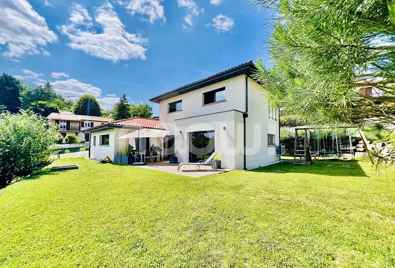ENVAL, CO-EXCLUSIVITE, agréable villa contemporaine de 2018 sur deux niveaux, construction RT 2012 en brique avec vide sanitaire, entrez dans les lieux et laissez-vous séduire par une pièce à vivre de 52 m2 avec cuisine intégralement équipée ouverte sur la salle à manger et le salon donnant sur une terrasse exposée sud à l’abri des regards, le volume de plain-pied dispose d’une suite parente avec chambre, salle d’eau et dressing. Dirigez-vous à l’étage supérieur pour trouver deux chambres, un bureau (salle de jeu à l’usage avec possibilité de créer une quatrième chambre) et une salle de bains. La prestation offre une buanderie/cellier et un garage de 27.50 m2 et bénéficie de nombreux éléments de confort : isolation, double vitrage, volets roulants motorisés, pompe à chaleur air/eau avec chauffage au sol, fibre optique etc. Édifiée sur une parcelle de 725 m2, l’habitation offre un attirant cadre de vie avec une spacieuse terrasse, un jardin paysager clos et sécurisé et une vue dominante sur la commune et sa nature.
