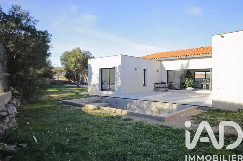 VILLA PLAIN-PIED RÉCENTE, 4 FACES de 133m² environ, édifiée entre 2022 et 2023 sur une GRANDE PARCELLE de 948m². GARAGE, PISCINE. TRAVAUX DE FINITIONS À PRÉVOIR: AMÉNAGEMENTS EXTÉRIEURS et PISCINE (DÉJÀ CONSTRUITE ! À finaliser).