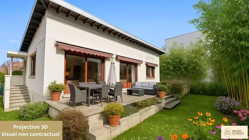 Maisons de Famille Immobilier, l'expert de la vente de maisons dans l'Ouest parisien. LA CELLE SAINT-CLOUD. A la limite de Vaucresson. A deux pas du marché et à proximité immédiate des écoles et de l'accès à l'A13, nous vous proposons " Celloise ", cette belle maison située au bout d'une impasse au calme absolu. Maison de plain-pied de 200m2 (100m2 habitables + 100m2 d'entresol), sur une parcelle de 300 m². Elle se compose sur le niveau principal, d'un double séjour lumineux de 27 m² sur une terrasse plein sud, une cuisine indépendante, trois chambres, une salle de bains et un WC séparé. Un entresol total : buanderie, rangements. L'espace de 100m2 vous offre diverses possibilités : chambres d'appoints, salle d'eau, salle de jeux, salle de sport, salle de cinéma. A l'extérieur, vous profiterez également d'un garage et d'un atelier. Calme absolu. Exposition plein sud. Quartier recherché. Proximité écoles, A13, marché, forêt. Contact direct 7/7 06.59.12.90.41 Mickael Carre E.I agent commercial RSAC 792962755 Versailles (3.96 % honoraires TTC à la charge de l'acquéreur.)