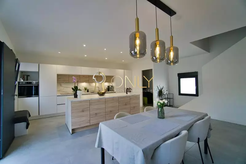 Mitoyenne d'un seul côté, la maison est implantée sur une parcelle clôturée de 167 m². Dès l'entrée, vous serez séduit par les beaux volumes. Le rez-de-chaussée offre une vaste cuisine dinatoire, un salon indépendant baigné de lumière grâce à sa triple exposition Sud-Ouest-Nord, avec un accès direct à la terrasse. Ce niveau comprend également un WC indépendant ainsi qu'un espace cellier/buanderie.