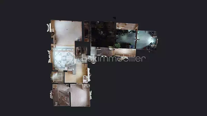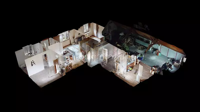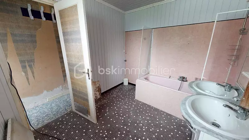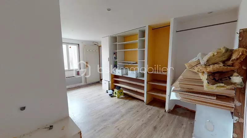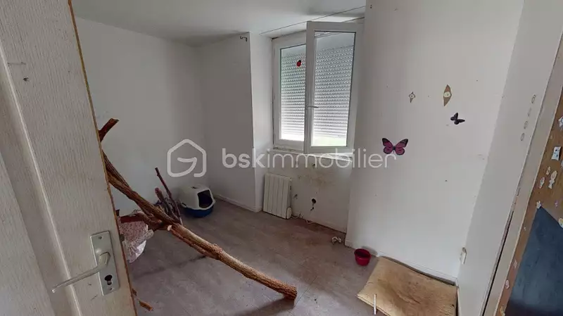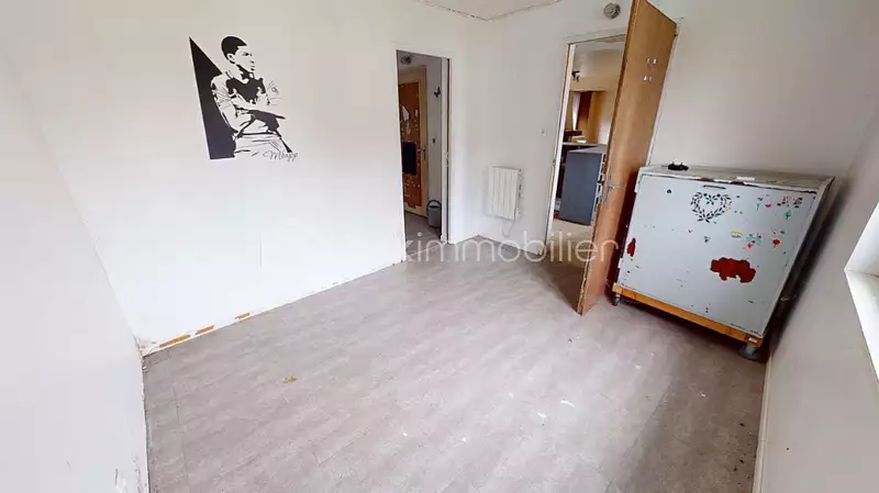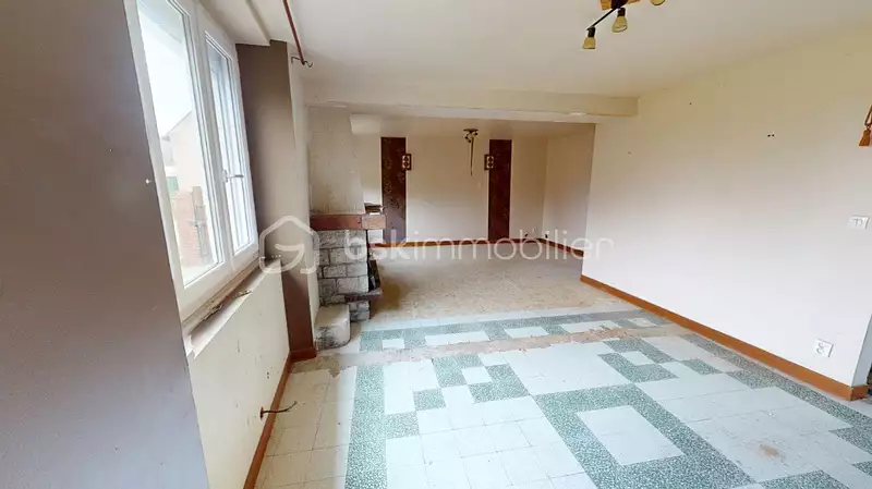 Maison à rénover elle se compose d'une entrée donnant d'un coté sur une chambre, de l'autre le salon/séjour avec cuisine ouverte qui donne sur une autre chambre.