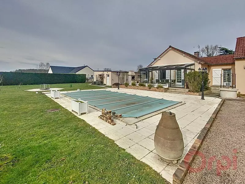 À vendre : Charmante maison de 134 m² entièrement de plain pied,située à Domérat, Allier, offrant un cadre de vie exceptionnel. Cette propriété en très bon état est parfaite pour une famille à la recherche d'espace et de confort. Elle dispose de trois chambres spacieuses et d'un salon accueillant