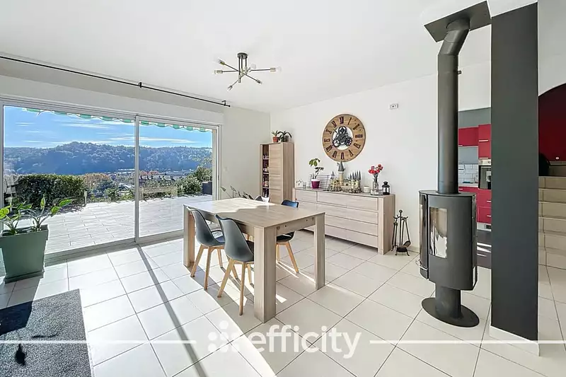 69700 GIVORS MONTÉE DES AUTRICHIENS - VUE DÉGAGÉE - MAISON SPACIEUSE - 4 CHAMBRES - CLIMATISATION - Syndell Gonçalves a le plaisir de vous présenter en exclusivité cette superbe villa T5 de 134 m², construite en 2008, nichée sur un terrain de 500 m² sur les hauteurs de Givors. Dès l'entrée, vous serez séduit par une spacieuse pièce de vie de près de 45m², baignée de lumière naturelle grâce à ses larges ouvertures, et agrémentée d'un poêle à bois au centre de la pièce, ainsi que d'une climatisation réversible. Cet espace convivial offre un accès direct à une agréable terrasse de 50 m², idéale pour vos moments de détente ou vos repas en extérieur. Vous découvrirez également une cuisine séparée de 12m² bénéficiant d'un accès direct sur l'extérieur par une porte-fenêtre. Une grande buanderie de 9m² et un WC séparé complètent ce niveau. L'étage se compose de 4 chambres très spacieuses entre 12,5m² et 14m², dont une avec accès sur l'extérieur, ainsi que d'une grande salle de bain de 8,5m² équipée d'une douche et baignoire et d'un second WC séparé. De plus, vous profiterez d'une belle terrasse exposée Est, parfaite pour admirer le lever du soleil, ainsi que d'un jardin en escalier offrant de multiples possibilités d'aménagement. La maison dispose également de 3 places de stationnement privatives sur l'avant. Chauffage individuel électrique. Climatisation réversible dans la pièce à vivre et poêle à bois. Double vitrage PVC, volets roulants manuels et volets bois. Proche des écoles, des commerces, des transports, de la Gare SNCF et des axes autoroutiers. Pour plus d'informations, contactez Syndell Gonçalves par téléphone ou par mail.