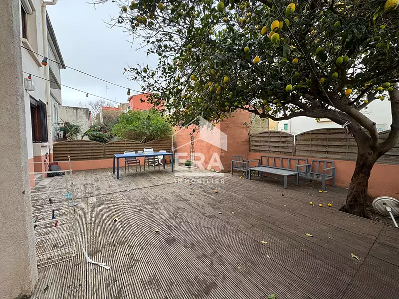 Fermée avec un portail et un portillon, elle dispose d'un garage avec porte motorisée et emplacement de parking devant, d'une cour à l'avant et d'une belle terrasse à l'arrière agrémentée d'un superbe citronnier.