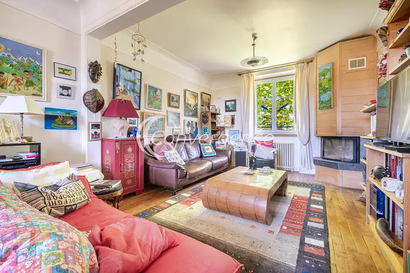 Au coeur d'un écrin de verdure, cette maison de 1952 élevée sur cave, se compose au rez-de-chaussée d'une entrée, un double salon séjour de 32m2 avec insert, d'une grande cuisine séparée et équipée, d'une chambre ainsi que d'un WC.