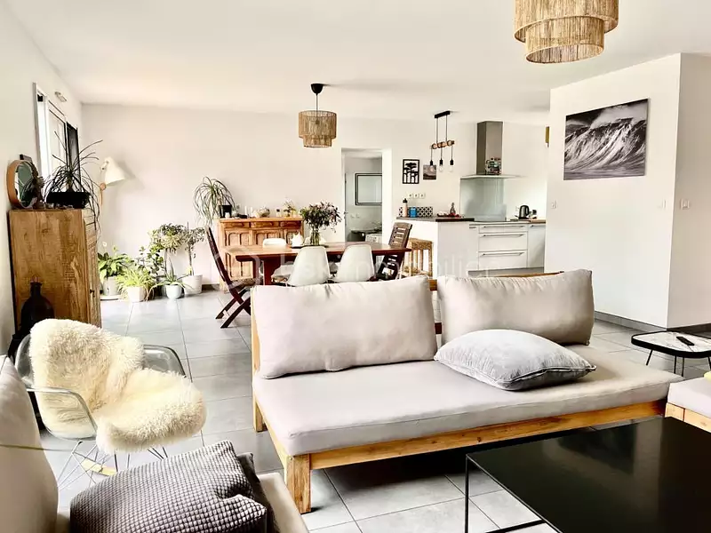 Coup de coeur assuré pour cette maison contemporaine de plain pied de type T5 de 134 m² avec piscine chauffée.