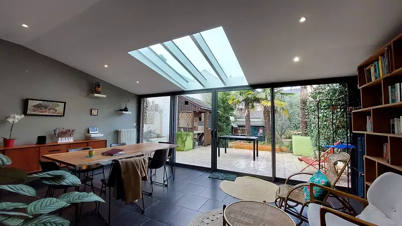 ✅ Séjour lumineux ouvrant sur une belle terrasse et un jardin arboré